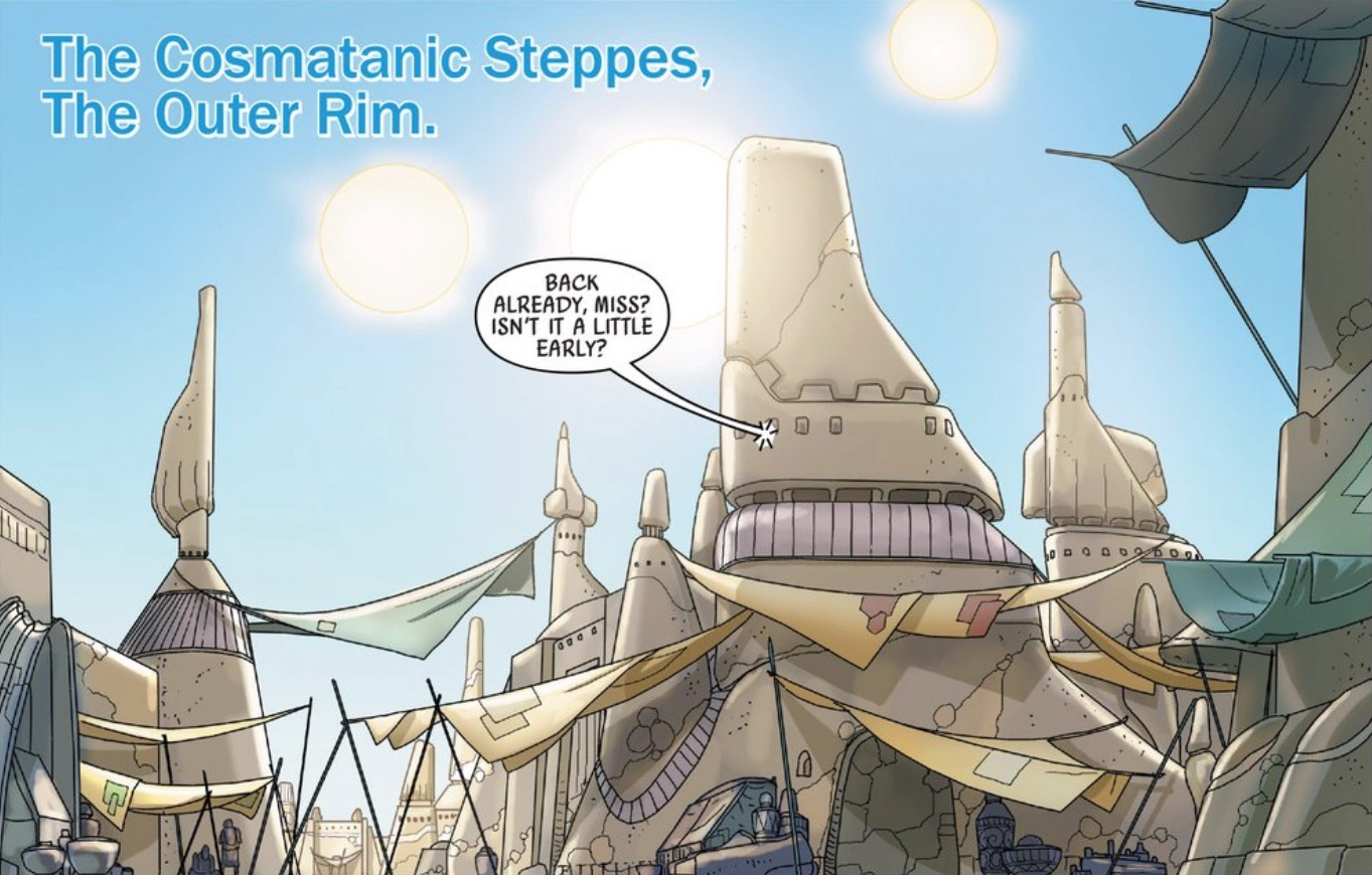 Косматанские степи были созданы для комикса 2016 года «Звёздные войны. Дарт Вейдер: Книга 4: Игра окончена» сценаристом Кироном Гилленом и изображены Сальвадором Ларрокой.[1]