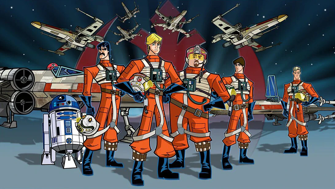 В предварительном черновике упоминалась эскадрильи «Дьявол» принимавшая участи в битве при Аквилле, во втором черновике битва при Аквилле была присоединена к битве при Явине, до участия в битве эскадрильи «Дьявол» дело так и не дошло, а главный герой сражался в составе эскадрильи «Банта», вооружённой истребителями «Y-Wing», пилот Чуи — в составе эскадрильи «Бома», вооружённой истребителями «X-Wing», в третьем, четвёртом, исправленном четвёртом черновике эскадрилья «Дьявол» стала Зелёной эскадрильей, эскадрилья «Бома» — Синей эскадрильей, в составе которой уже воевали главный герой и пилот Чуи Антиллес, ставший в четвёртом черновике Веджем Антиллесом, а в четвёртом черновике также и Биггс Дарклайтер, а эскадрилья «Банта» стала Красной эскадрильей, в итоговой версии фильма Синяя эскадрилья стала Красной, а Красная — Золотой.