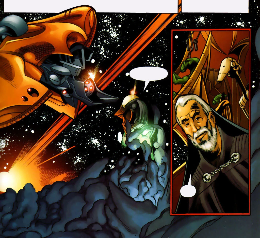 - ↑ Примерный показатель на основе соотношения размеров показанных на одном сюжетных слайдов в кампании Clone Campaighs джеонозийских истребителей и крейсеров Конфедерации, движущихся в одном строе в космосе, и соотношения размеров однотипных джеонозийского истребителя и более совершенного истребителя «Нантекс» в игровом процессе.