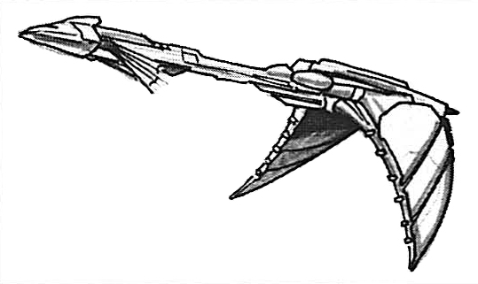 Мостик корабля был соединён длинным фюзеляжем с корпусом из двух отдельных крыльев, по форме напоминающих букву «Л», и оснащён выдвижными щитами-пластинами, которые можно было развернуть во время битвы. Рядом с кормой имелся ангар; там же располагался главный источник питания. Гипердвигатель, ионные двигателии маневренные реактивные двигатели были размещены на задних боевых крыльях. В целом крейсер мог развить высокую субсветовую и сверхсветовую скорость благодаря современному дизайну двигателей, который в немалой степени является результатом промышленного шпионажа в таких корпорациях, как компания «Верфи Куата» и «Соро-Сууб».