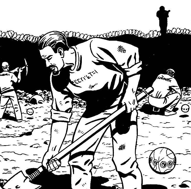 В шахтах имперской тюрьмы «Лусанкия» заключённые нагружали лопатами щебень в носилки и в корзины.