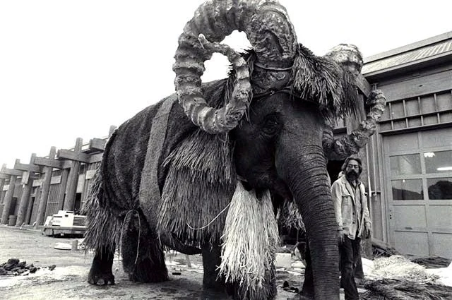 Леоном Эликсоном для слона был сделан специальный костюм банты, составленный из полос меха и лёгкого рогатого шлема из гибких вентиляционных труб. Хотя Марджи и была хорошо выдрессированным слоном, она с трудом приспосабливалась к весившему около 140 килограммов костюму, часто пробуя сбросить его во время съёмок[4]. Помимо этого, слониха оказалась добродушной, и съёмки с её участием прошли без особых происшествий[3]. Поскольку создатели фильма могли позволить себе только одного наряженного слона (первоначально предполагалось использовать двоих), единственная сцена, где Люк Скайуокер видит двух бант рядом, была создана с помощью видеомонтажа[5].