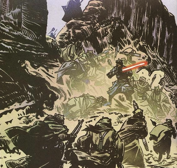 Дарт Сидиус приказывает Дарту Молу отправиться на Татуин, чтобы захватить и вернуть на Набу скрывшуюся от Торговой федерации королеву Амидалу, и расправиться с охранявшими её джедаями. Приземлившись на Татуине, Мол рассылает разведывательных дроидов на поиски, а сам тем временем тренируется, готовясь к предстоящей битве. Заметив неподалёку от корабля следы бант, ситх решает проверить, не следит ли кто за ним. Он отправляется по следу, и вскоре на него нападает из засады тускенский разбойник. Мол быстро справляется с противником, но на него тут же нападают ещё несколько тускенов, и всё продолжают прибывать, пока наконец ему ни приходится сражаться с целым племенем. В этот момент Мол слышит сигнал одного из вернувшихся разведывательных дроидов. Понимая, что стычка с тускенами может поставить под угрозу его миссию, Мол в конце концов спасается бегством, прыгнув на высокую отвесную скалу. Вернувшись к кораблю, он садится на гравицикл и мчится по указанным дроидом координатам. Вскоре он видит стоящий в пустыне набуанский корабль, и спешащих к кораблю джедая и мальчика. Ситх настигает их и вступает в бой с джедаем, который успевает крикнуть мальчику, чтобы тот бежал на корабль. Джедай оказывает Молу достойное сопротивление, а затем над ними нависает взлетевший корабль, и джедай запрыгивает на трап. Мол, раздосадованный неудачей, смотрит вслед улетающему кораблю и предвкушает новую встречу, надеясь совершить свою месть.