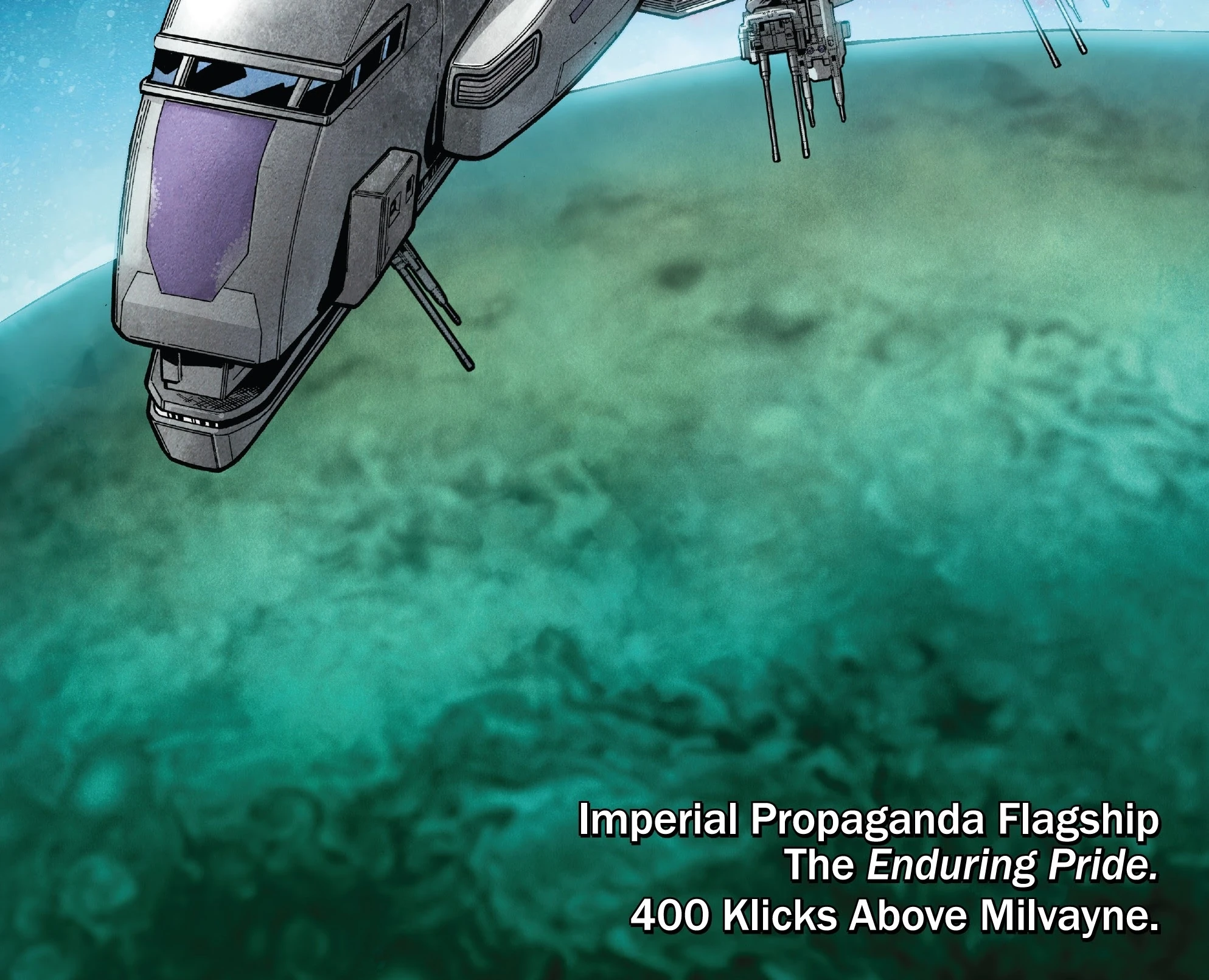 Факт того, что жители Милвейна наблюдают за погоней за нарушителями, а не смотрят одобренные программы, вызвал интерес со стороны Коалиции за прогресс, флагман которой, «Несокрушимая гордость», находился на орбите планеты в четырёхстах кликах от неё[6]. На связь с персоналом корабля вышла лично глава ведомства, министр Питина Мар-Мас Вур[12], желавшая быстрого решения проблемы. Тем не менее, имперцы не смогли ничего предпринять до момента, когда Афра и 0-0-0 оказались окружены[6].