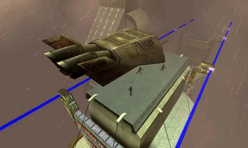 Получив сигнал бедствия с ховер-поезда, сообщающего, что кто-то пытается взорвать его, Катарн и Корр увидели, что наёмники высаживаются на поезд, используя грузовые суда в качестве десантных барж. Катарн высадил Корра на поезд, чтобы остановить его, пока он не врезался в здание, а сам Катарн на «Когте ворона» вступил в бой с грузовыми судами[1].