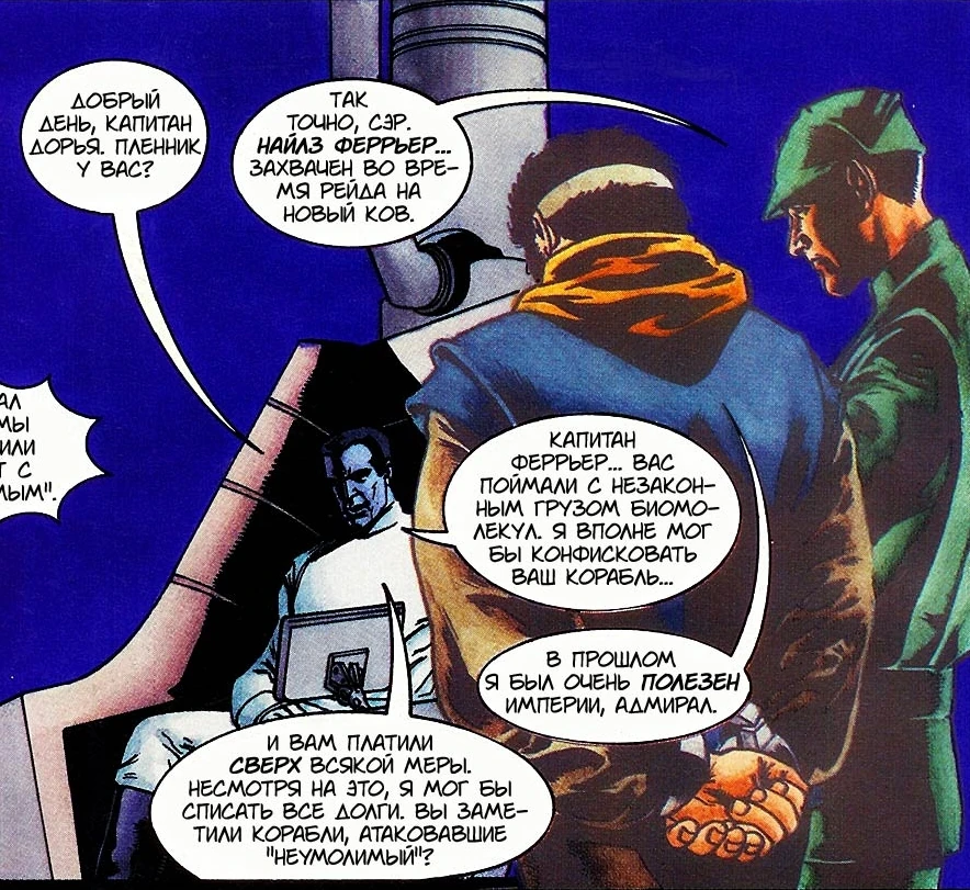 По маяку Феррье проследил за «Госпожой удачей», направлявшейся на Пантоломин, и в казино «Риф» помог имперцам захватить капитана Хоффнера, поставлявшего Бен Иблису дредноуты из флота «Катана».