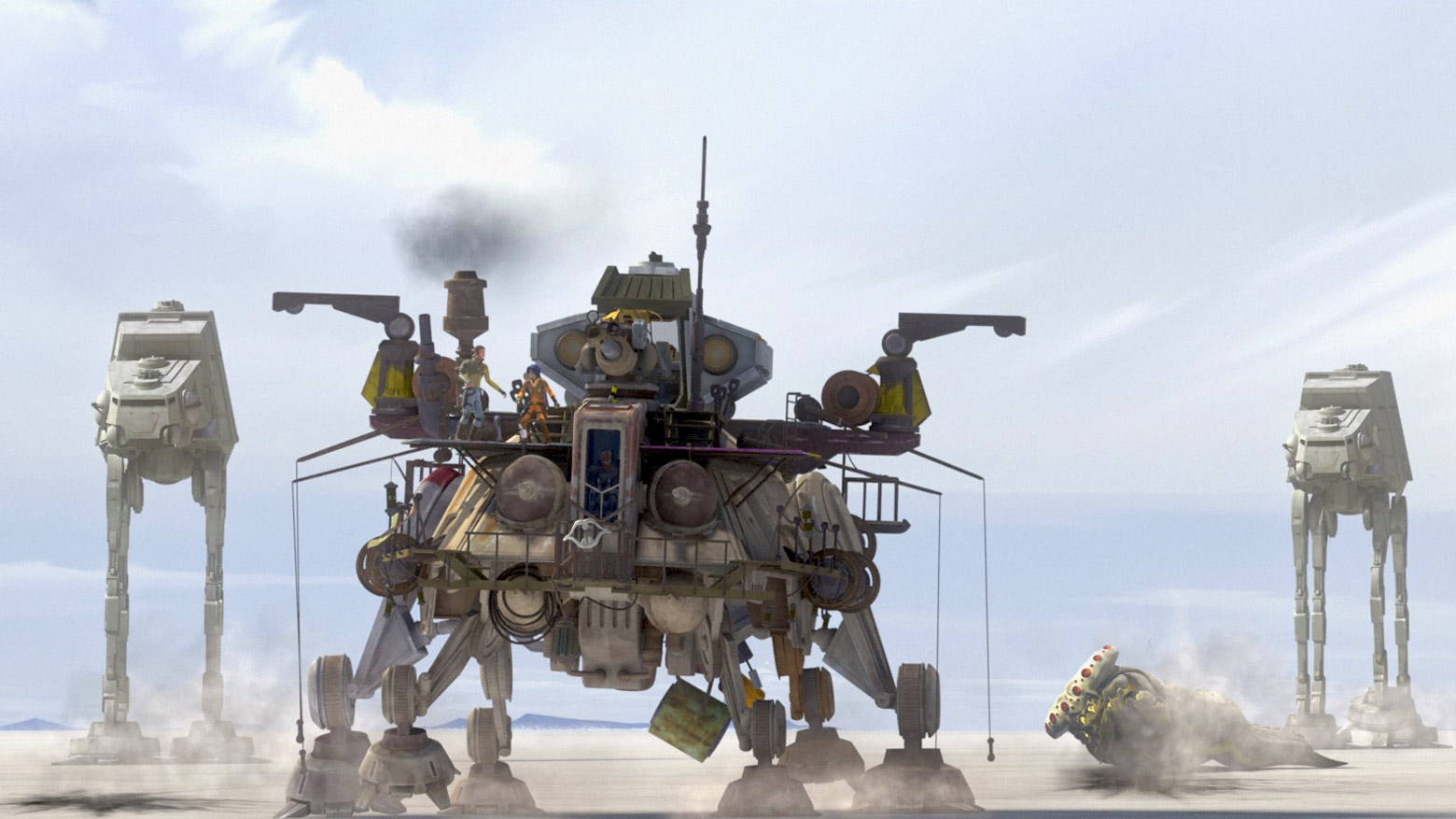 Несмотря на несколько попаданий, AT-TE клонов смог врезаться в ноги AT-AT Каллуса. Однако более мощный и высокий AT-AT Каллуса вскоре получил преимущество над устаревшим AT-TE. Несмотря на неблагоприятные условия, Рекс и его товарищи-клоны решили продолжать сражение. Под натиском Эзры, Кэнан согласился помочь клонам. Пока Сабин управляла «Фантомом», Кенан, Эзра и Зеб десантировались и ворвались в кабину второго из оставшихся AT-AT и захватили шагоход, после чего использовали оружие шагохода для атаки на шагоход Каллуса, последний лояльный имперцу[3].