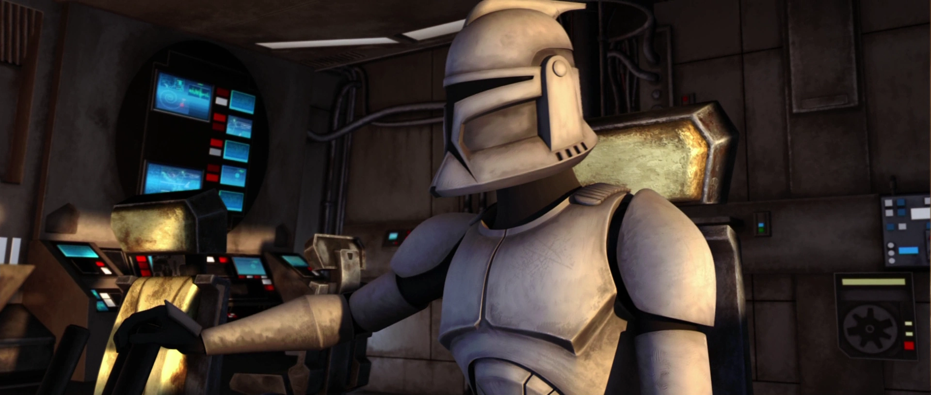 После спасения R2-D2 Энакин Скайуокер связался с клоном-пилотом и приказал ему посадить «Сумерки» в южном ангаре. По прибытии туда пилот встретился со Скайуокером, Рексом и солдатом-клоном Деналом. Когда отряд собрался покинуть посадочной отсек в поисках Асоки Тано, сражавшейся с генералом Гривусом на световых мечах, R3-S6, будучи сепаратистским шпионом, перекрыл все выходы и включил нескольких дроидов-стервятников, прикреплённых к потолку. Когда дроиды открыли по Скайуокеру и клонам огонь, те были вынуждены найти укрытие. Во время перестрелки джедай приказал Рексу привести в действие взрывные устройства, которые клоны ранее разместили в реакторе станции. Когда к отряду присоединилась Тано, а R2-D2 открыл двери ангара снаружи станции, «Сумерки» под управлением клона-пилота покинули станцию прежде, чем та была уничтожена[2].