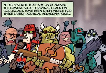 Между тем, Мас Амедда сообщает Верховному Канцлеру Палпатину об уничтожении «Красной руки» Квинланом Восом, на что тот отвечает, что они уже сыграли свою роль и больше не нужны.