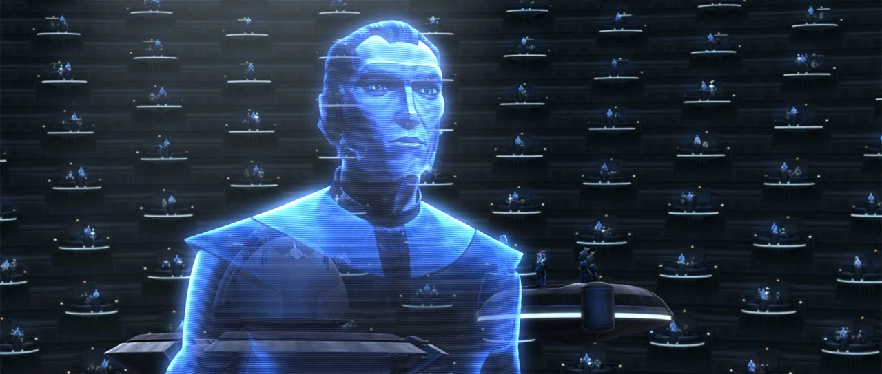 Правящий совет Мандалора слушает речь сенатора Падме Амидалы