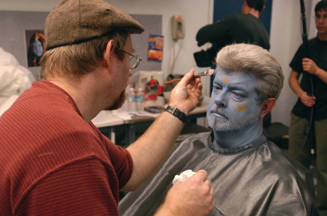 Дэнни Вагнер гримирует Джорджа Лукаса для роли Папаноиды