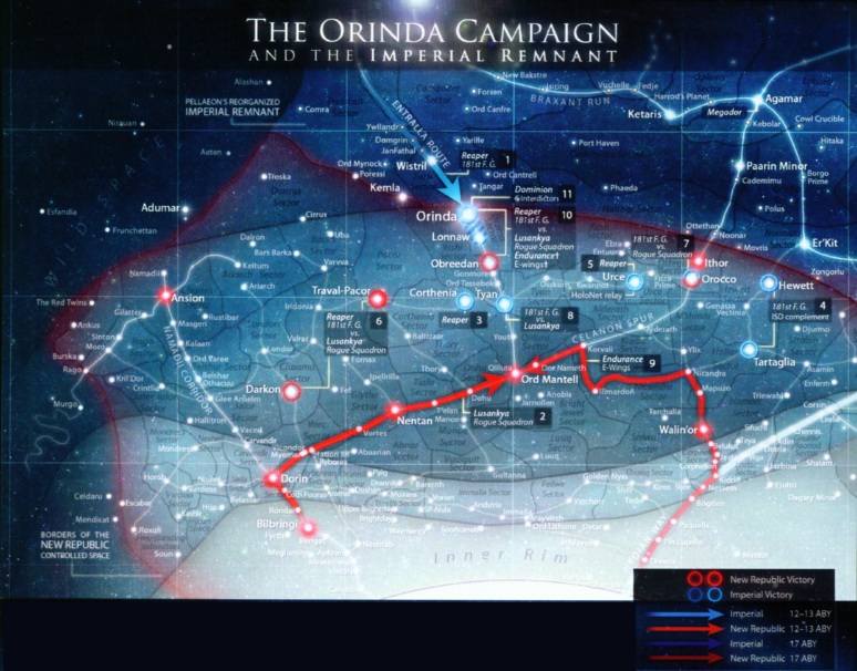 Имея эти силы, Пеллеон связался с имперскими фракциями во Внешнем Кольце, чьи моффы охотно назначили его главнокомандующим Вооруженных сил Империи, и предоставили кроме своих войск еще один суперразрушитель «Жнец». Теперь Империя располагала внушительной армадой, и Пеллеон решил продемонстрировать Новой Республике, что война еще далеко не окончена. Оринда, ввиду своей важности для Империи, для этих целей подходила идеально. Таким образом, к началу Ориндской кампании все было готово.