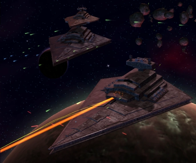 Позже у Эндора была собрана большая часть Имперского Флота, чтобы защищить недостроенную вторую «Звезду Смерти». Император Палпатин придумал ловушку для Повстанцев. Палпатин, действуя через Вейдера, направил флот к дальней стороне Эндора, чтобы напасть неожиданно. Вскоре в систему Эндор прибыл Флот Альянса, и на него неожиданно напал Имперский Флот. Фирмус Пиетт заблокировал все выходы, начав схватку против известного адмирала Мон-каламари Акбара, доверив другим уничтожить остальных противников. Пиетту был дан прямой приказ от Палпатина не начинать атаку до определённого времени, и вскоре его флот начал страдать от тактики Ландо Калриссиана, согласно которой корабли Альянса должны были уничтожить звёздные разрушители[17]. Суперлазер «Звезды Смерти» не мог использоваться, так как мог задеть имперские корабли[18].