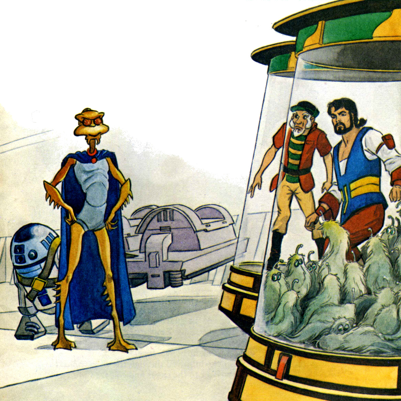 Манго и его дроиды предстают перед губернатором Кунгом и имперским генералом Скридом. Те приказывают запереть Манго в клетку с мапплами, перепрограммировать C-3PO, а R2-D2 заставить таскать ховер-телегу. Манго знакомится с Нупом Йелдарбом, смотрителем старого маяка, а вскоре R2-D2 спасает пленников. В ходе побега Гафф случайно стреляет во взрывоопасный груз, и станция-маяк взрывается вскоре после того, как Манго и его спутники улетают с неё на облачном транспорте. В благодарность Нуп указывает Манго путь к системе Рун.