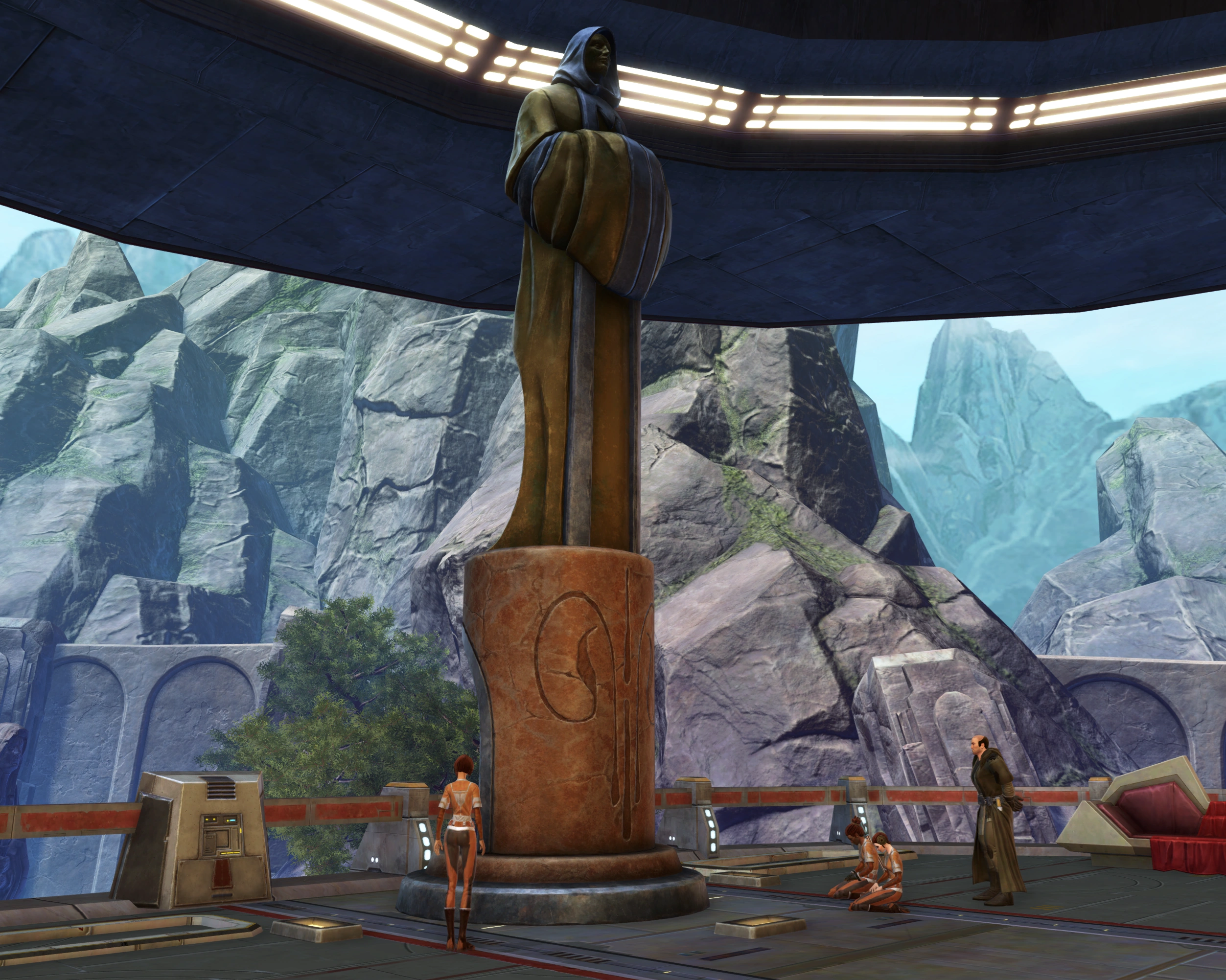 Джедаи медитируют возле статуи в Пристанище мастеров