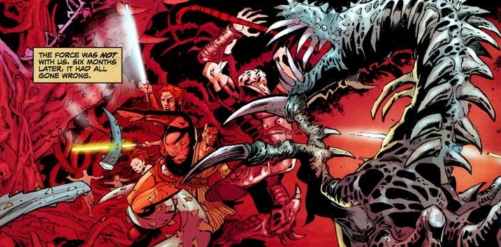 После трёх лет кровавой войны Альянс был в таком состоянии, что его можно было легко захватить, в то время как ситхи всё увеличивали свои силы, даже независимо производя свои звёздные истребители типа «Ярость». Империя даже повторила то, чего не могла достичь со смерти последнего клона Палпатина — взять Корусант. Альянс наконец сдался, и его владения были включены в Империю, а оставшиеся Центральные силы Галактического Альянса продолжили сражаться с новой Империей. Вскоре Император призвал Орден джедаев сдаться и присоединиться к Империи, что многие и сделали, став Имперскими рыцарями. Но остальные остались верны воле Силы и отказались вступать в союз с ситхами. Они ушли с Корусанта на Оссус, в Академию джедаев. Ситхи, в конечном счёте, проследовали туда за джедаями, и Дарт Нил провёл жесточайшую атаку на Оссус, в которой ему помогали Имперские силы под началом моффа Рульфа Йеджа. В этой битве был убит Кол Скайуокер. Резня на Оссусе рассеяла джедаев по всей галактике, но не уничтожила их полностью. Несколько джедаев, позже, возвращались на планету прямо под носами имперских патрулей. Некоторые вонги, включая мастера-формовщика Ней Рин, вернулись, чтобы уберечь джедайские артефакты, которые уцелели после резни на Оссусе и не были украдены пиратами. Кейд Скайуокер в конце концов продолжил своё обучение у мастера Вульфа Сазена.