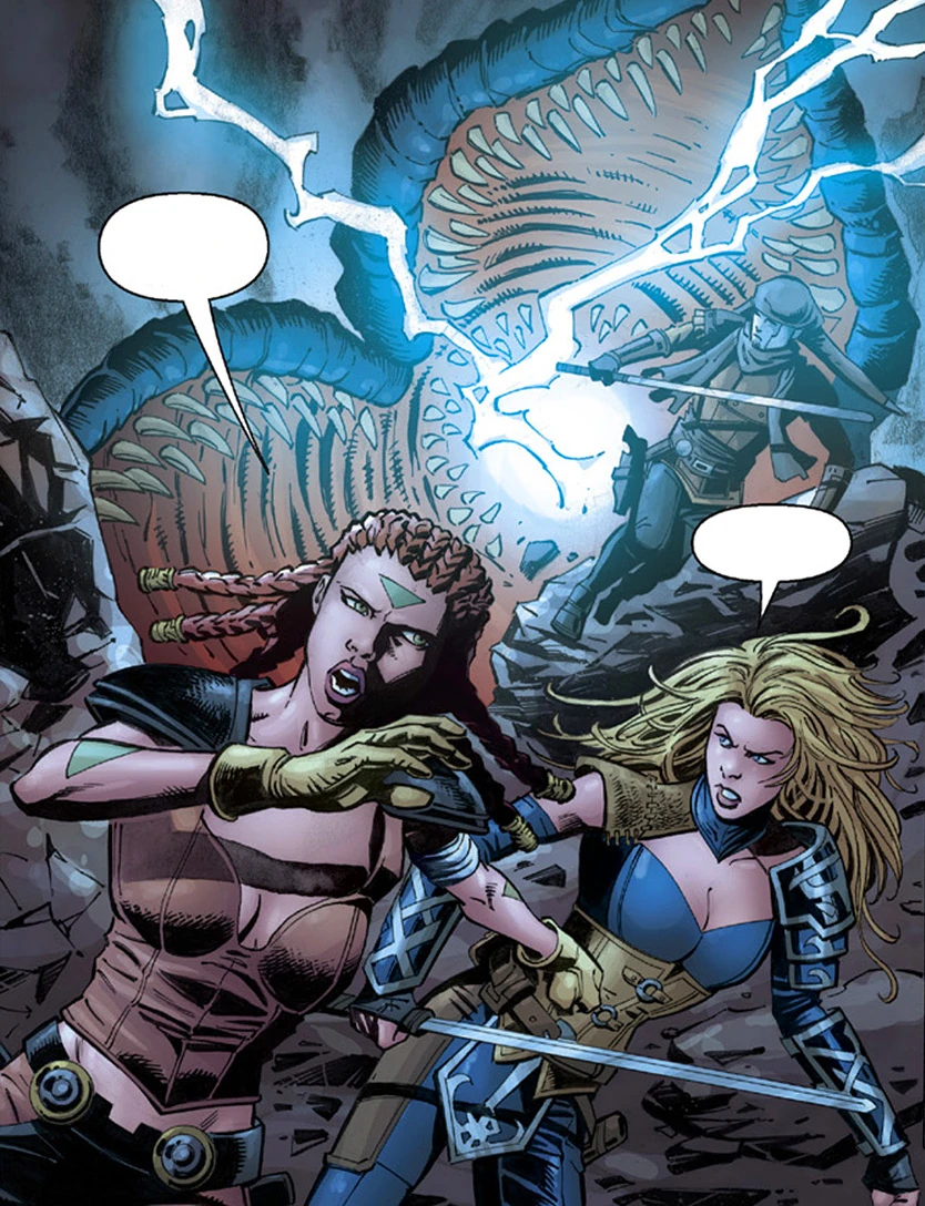 Прибыв на место, они увидели Шей Коду и чужеземца, из последних сил сражавшихся с саарлом. Рори и Хоук бросилась на помощь Шей. Но когда Зеш сразил саарла, она почувствовала, что энергия Силы, покидая животного, стала питать шторм Силы, средоточием которого был Зеш. Рори предложила Зешу сдаться, пообещав, что дже'дайи не причинят ему вреда, но тот отказался. В итоге Цюань-Яну удалось Силой утихомирить шторм, в результате чего пострадал и он сам, и Зеш, которого дже'дайи взяли в плен. В дальнейшем Хоук и Рори перевезли Зеша из Храма целительства Махара Кеш, где тот лечился, на Боган[6].