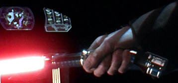 - Как было сказано в описании меча, такая рукоять делает более удобными колющие удары, именно поэтому такие рукояти были популярны у шпаг и рапир, в том числе у современных спортивных. По сути, световой меч с изогнутой рукоятью — это световая шпага/рапира.