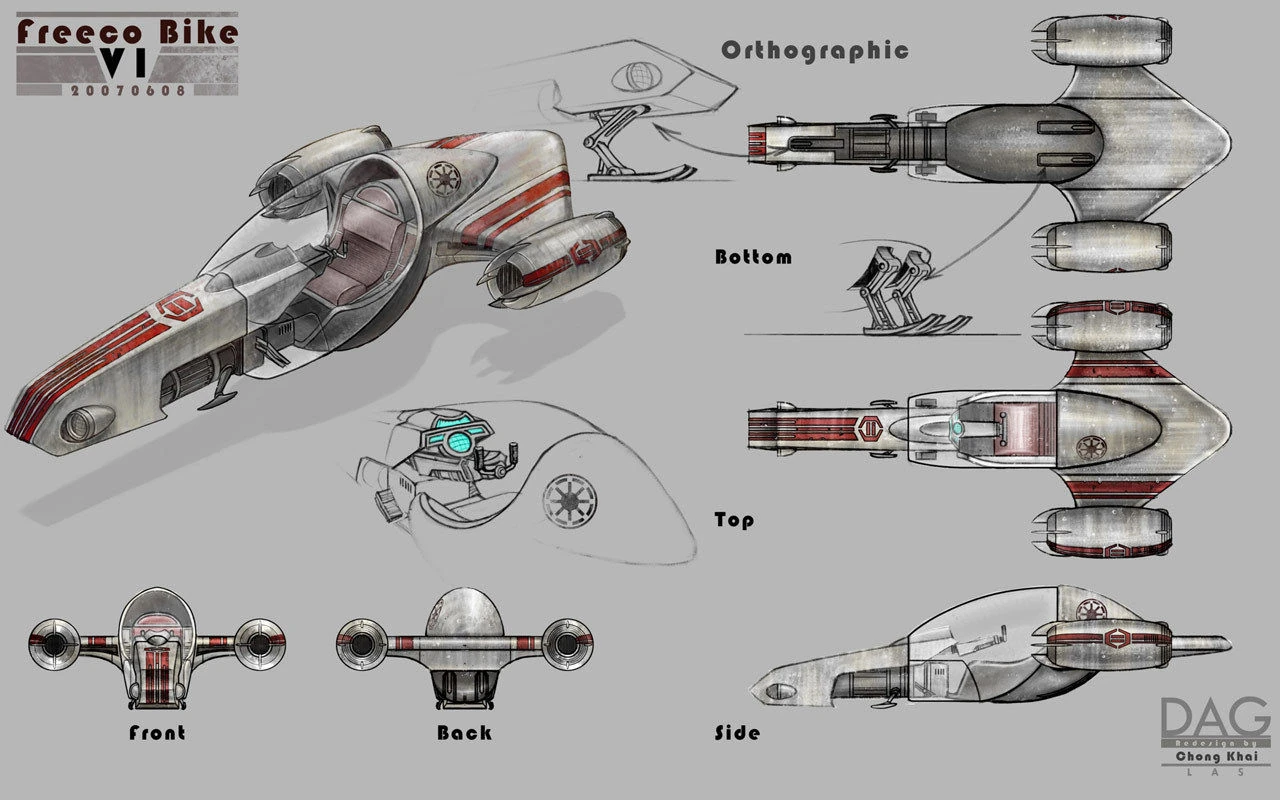- Официальный архив «Звёздных войн» (2014), выпуск 4 (SWO1–2, CK-6 'Freeco' Swoop Bike)