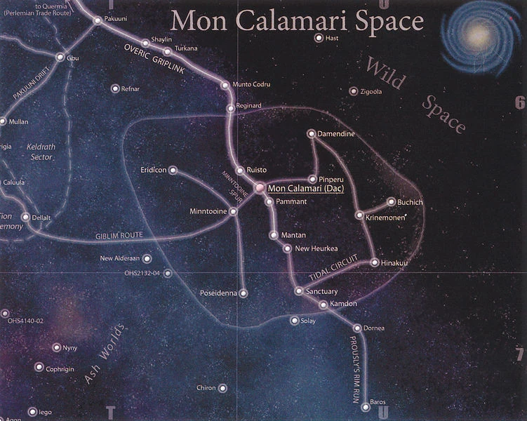 В сектор Каламари входили следующие планеты Бучич, Дак (Мон-Каламари), Дамендин , Эридикон IV, Кринемонен, Миннтуин, Паммант, Тарал V и Талас[1].