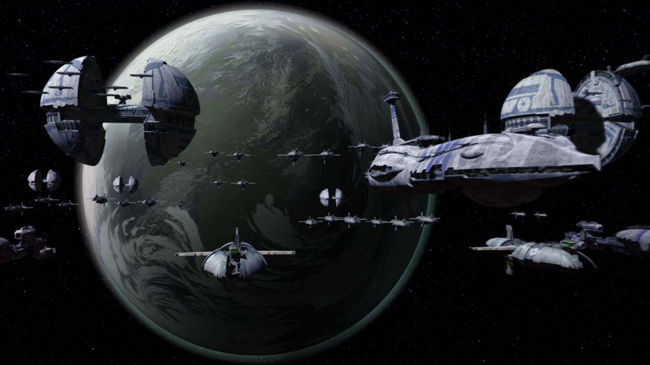 Армада Конфедерации защищает сепаратистский корабль снабжения над Умбарой.