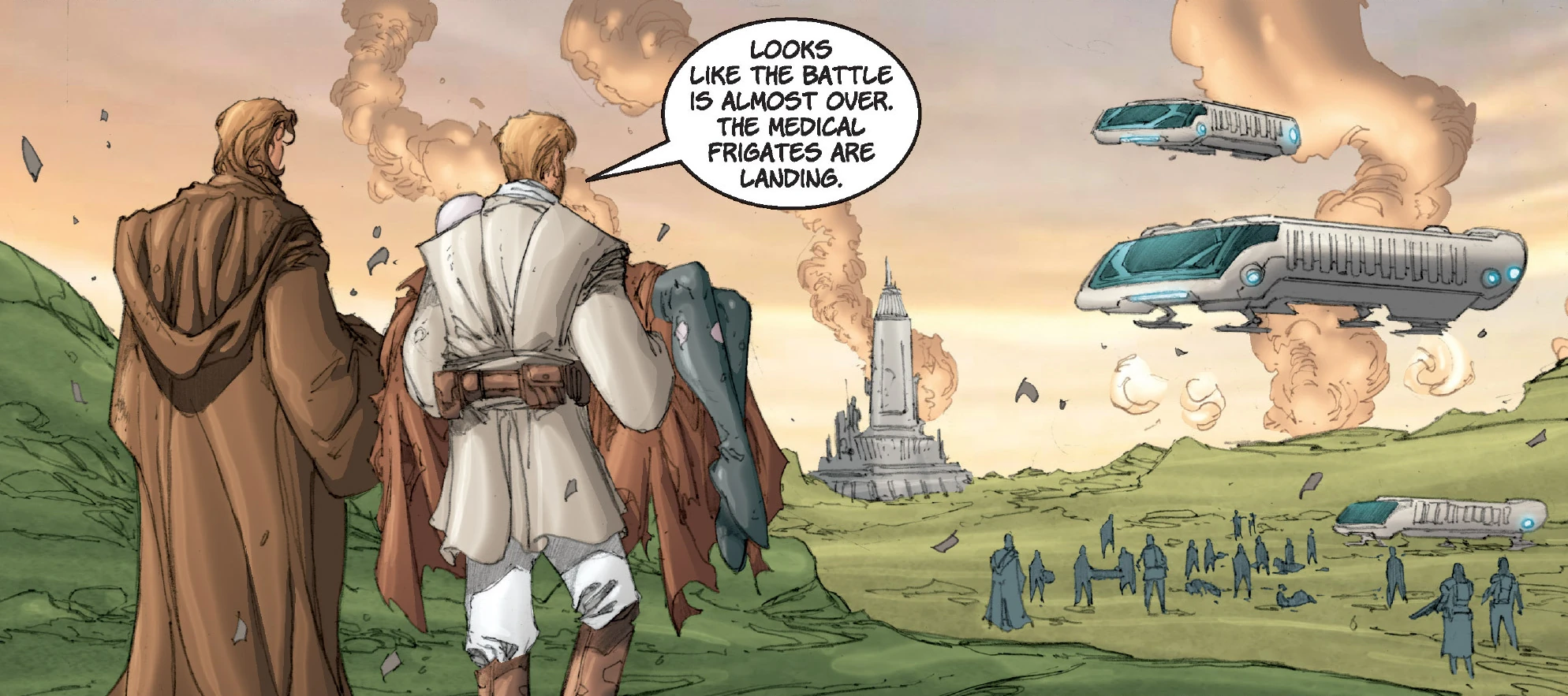 - «Похоже, битва почти окончена. Медицинские фрегаты садятся».