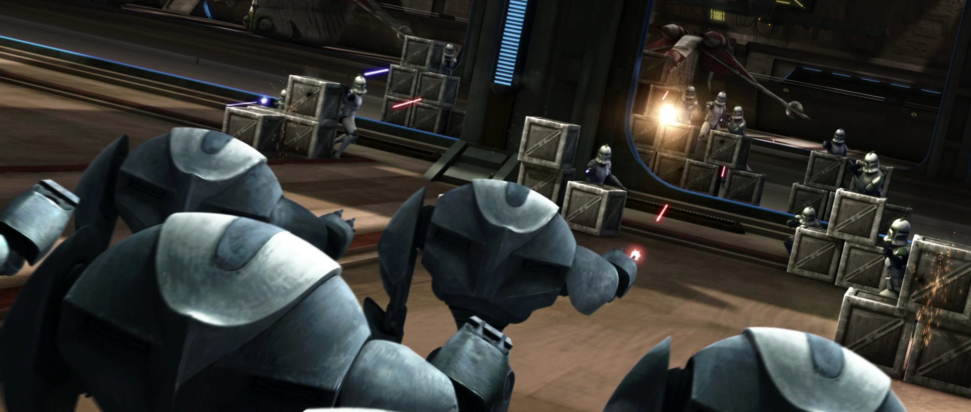 Солдаты-клоны защищают «Спокойствие» от супердроидов B2