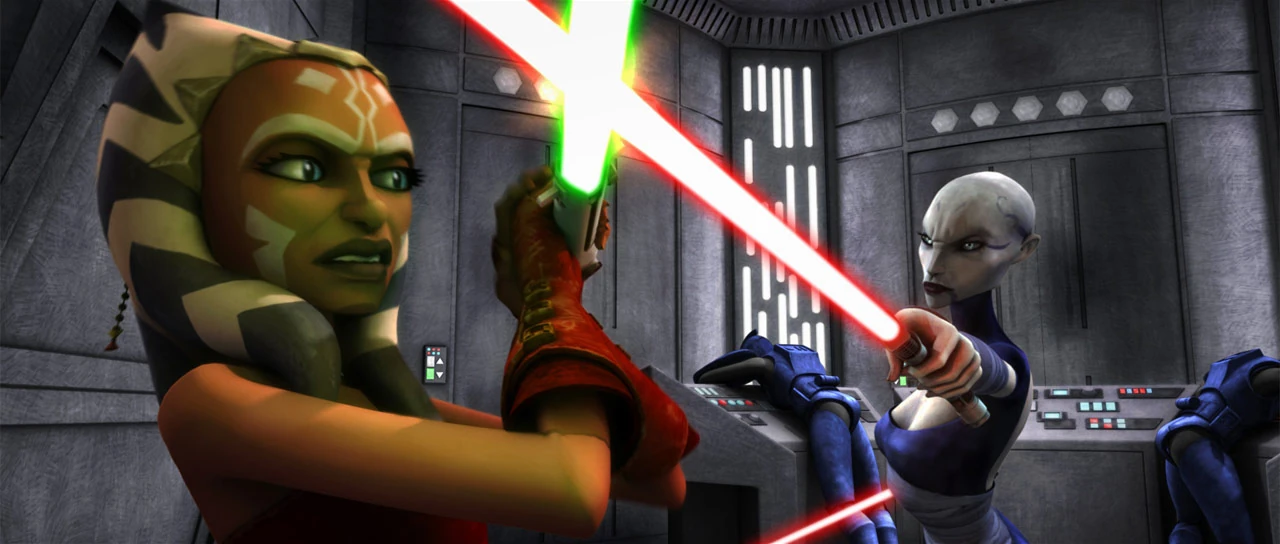 Асажж Вентресс атакует Асоку Тано на тюремном уровне «Спокойствия»