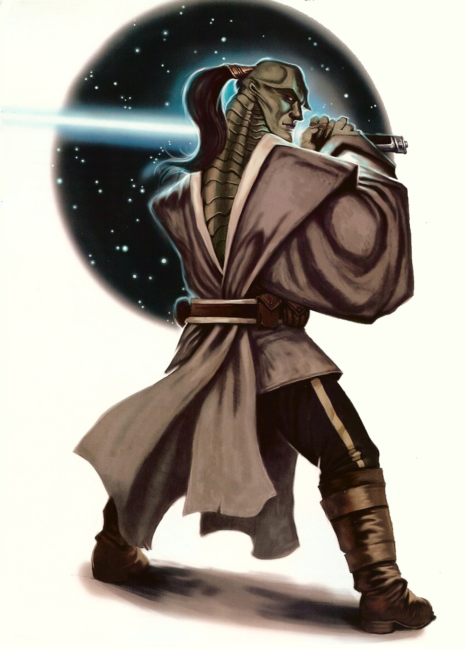 Согласно Лиланду Чи, изображённый в справочнике «Новая иллюстрированная энциклопедия. Расы и существа» джедай-фоллинец мог быть Митриком[3]