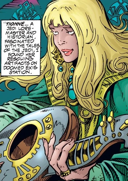 В космопорте Орд-Мантелла Тионна получила информацию о древней локации джедаев — станции «Экзис». Хотя она не могла достаточно заплатить информатору, она посоветовала ему поделиться информацией с Люком Скайуокером, который занимался восстановлением Ордена джедаев и был готов щедро заплатить за сведения о прошлом джедаев[1].