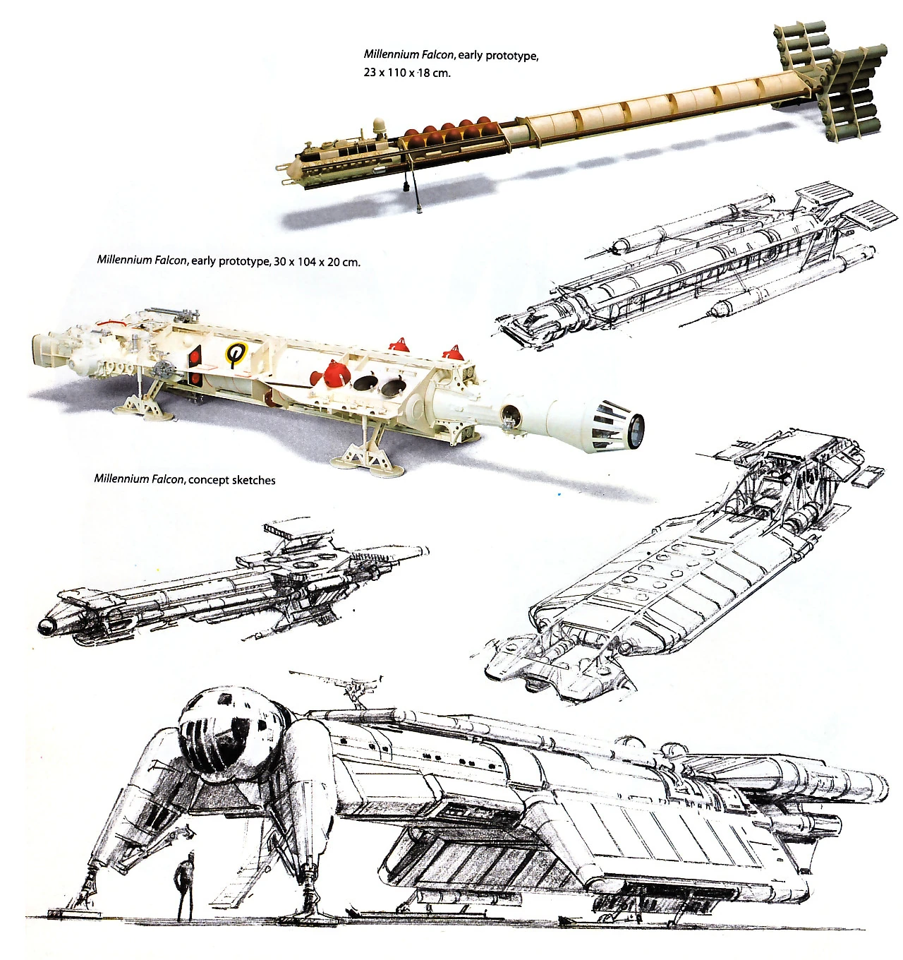 Оригинальная модель «Тысячелетнего сокола» была изменена в последнюю минуту, потому что слишком напоминала корабли Орлиного Транспортёра. Замена, как говорят, основана на полусъеденном гамбургере с маслиной на зубочистке, увиденной Джорджем Лукасом, пришедшим в ILM.