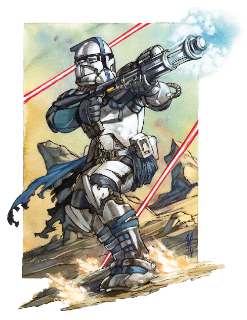 Во время Войн клонов тяжёлые автоматические бластеры использовались в Великой армии Республики специально обученными солдатами-клонами — элитными разведчиками-коммандос.