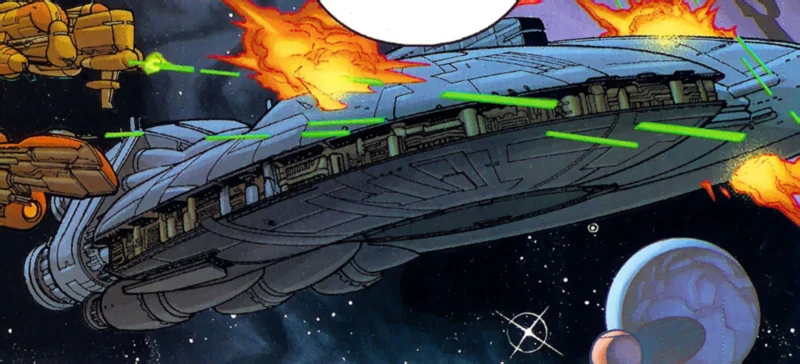 - «Звёздные войны. Республика 39: Гиперпространственная война Старка, часть 4» (появление в воспоминаниях) (реткон)