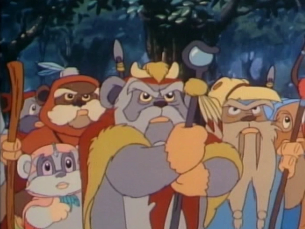 Эвоки празднуют победу, а чуть позже Малани приводит Уикета к заново отстроенному жителями деревни боевому фургону, в благодарность за подвиг Уикета. Также жители деревни извиняются перед эвоков за то, что проявили к нему неверие. Появившийся призрак Эрфама Уоррика безмолвно поздравляет потомка — кладет тому руку на плечо и подмигивает.