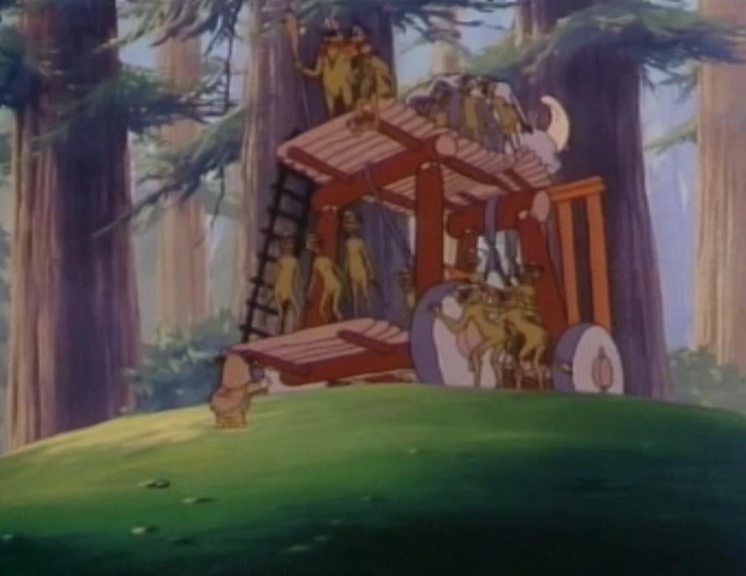 Вождь Чирпа собирает армию из жителей деревни Светлого древа и собирается дать дулокам бой. Однако, при помощи фургона, Горниш с отрядом легко пробивается за эвокские укрепления и направляется к роще Древ души. Тем временем фургон догоняет Малани верхом на Баге и помогает Уикету освободиться. При помощи уловок и защитных механизмов Уикету и Малани удается столкнуть почти всех дулоков на землю, кроме самого короля Горниша и его жены. Лидер дулоков пытается шантажировать Уикета, на что эвок отвечает уничтожением фургона, дабы тот не попал вновь в лапы к врагам.
