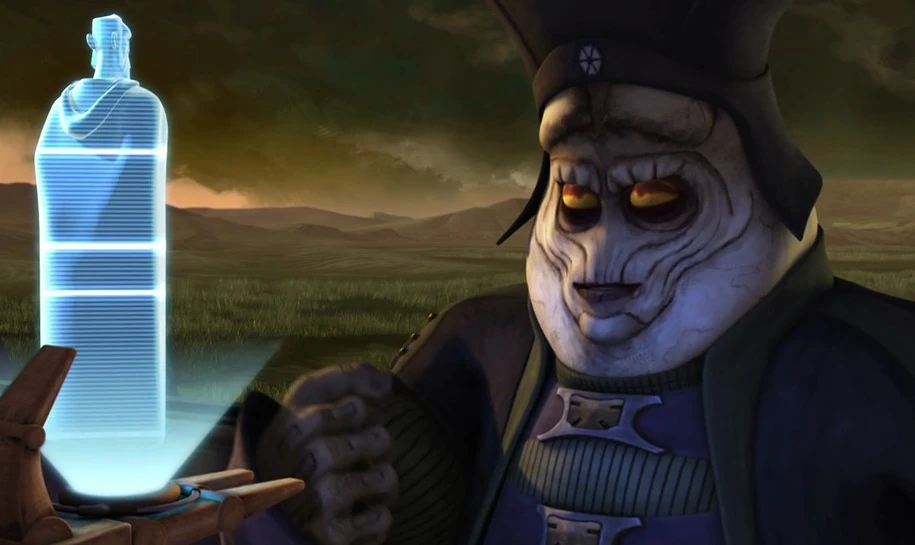 «Шары? Ха-ха-ха, забавно... Джедаи? Что они делают здесь?! Стоп!» - — Лок Дёрд выслушивает доклад дроида (источник)