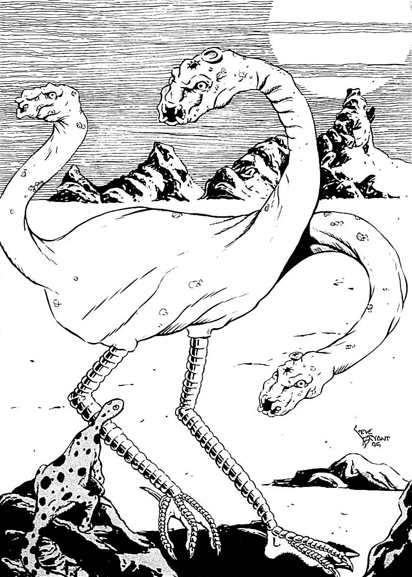 Ча'уэн'хэ имели две тонкие ноги с костяными шипами длиной в дециметр на пятках и чешуйчатые яйцевидные тела. Их самой характерной чертой было наличие трёх голов, располагавшихся на гибких двухметровых шеях. Все три головы находились в постоянном движении, поэтому ча'уэн'хэ было трудно застать врасплох. Рты ча'уэн'хэ были окружены псевдо-пальцами, что позволяло им использовать свои головы как руки. В случае угрозы ча'уэн'хэ мог дать отпор ударом пяточных шипов или втянуть головы внутрь тела для их защиты. С полностью вытянутыми шеями ча'уэн'хэ достигал роста четырёх метров.