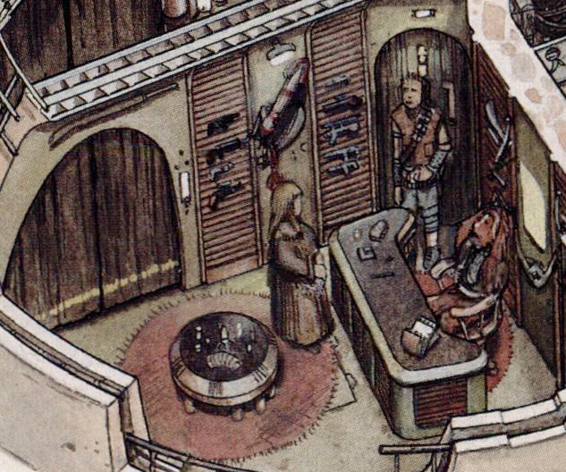 - Путеводитель по Галактике, выпуск 7: Мос-Эйсли (первое упоминание)