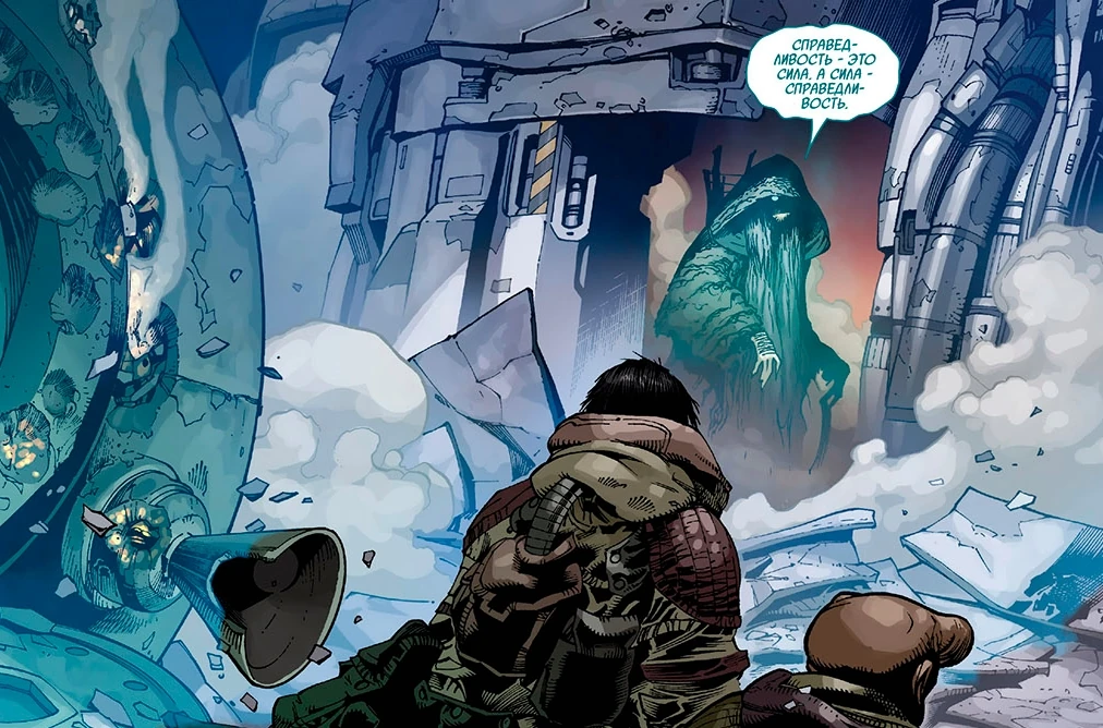 Афра подходит к обломкам «Пенумбры-1» с Дек-Нилом и Ясом