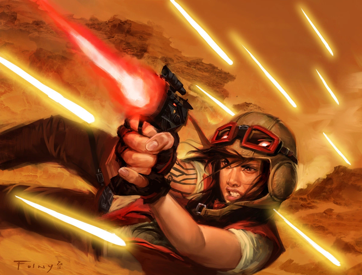 Афра уворачивается от выстрелов Хана Соло на Врогас-Васе