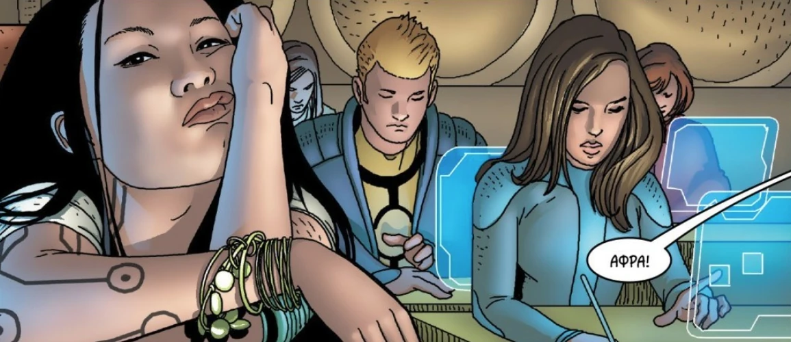 Антос также проявила интерес к сериалу кроссовер, в котором Афра подружилась с Гвен Пул (еще один персонаж Марвел, которого она создала совместно для Невероятная Гвенпул), заказывая фан-арт с изображением взаимодействующих персонажей[82][83][84].