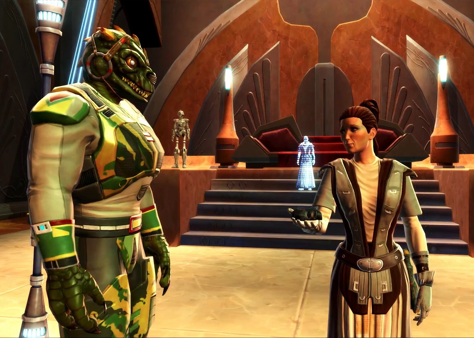 Юанна Пар и Кайзен Фесс просматривают голограмму Радживари