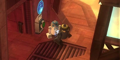 R3-S6 пытается помешать R2-D2 открыть защитный экран ангара
