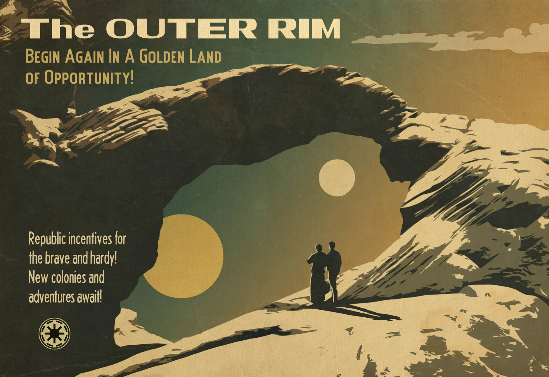 Cumhuriyet'in Dış Halka Bölgeleri'ne doğru genişlemesi hem galaktik hükûmet için hem de özel sektör için oldukça karlıydı. Ticaret Federasyonu'nun alt bir kuruluşu olan On Bir Yıldız Reklamcılık, Cumhuriyet Ekonomik Kalkınma Bakanlığı ile yakın bir şekilde çalışarak Dış Halka'nın keşif ve kolonize edilmesine ve iç bölgelerde yaşayan alt sınıf vatandaşların Dış Halka'ya yerleşmesini teşvik etmeye yönelik propaganda faaliyetleri yürüttü. Böylelikle Galaktik Cumhuriyet yeni gezegenleri kendisine katacak; Federasyon ise Dış Halka'ya gitmek isteyen yerleşimcilerden yol ve kayıt ücretleri alarak kar elde edecekti.[13]