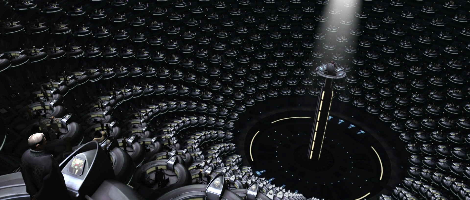 Savaşın ilerleyen yılarında Senato, ordu için ek klon takviyesi yapıp yapmamayı gündemine aldı.[97] Bu gibi tekliflerin kabul edilmesiyle birlikte Cumhuriyet hazinesi neredeyse boşaldı ve zamanla hükûmet Coruscant'ın alt katmanlarına her zaman sunduğu belirli hizmetleri sunamaz hale geldi.[98]