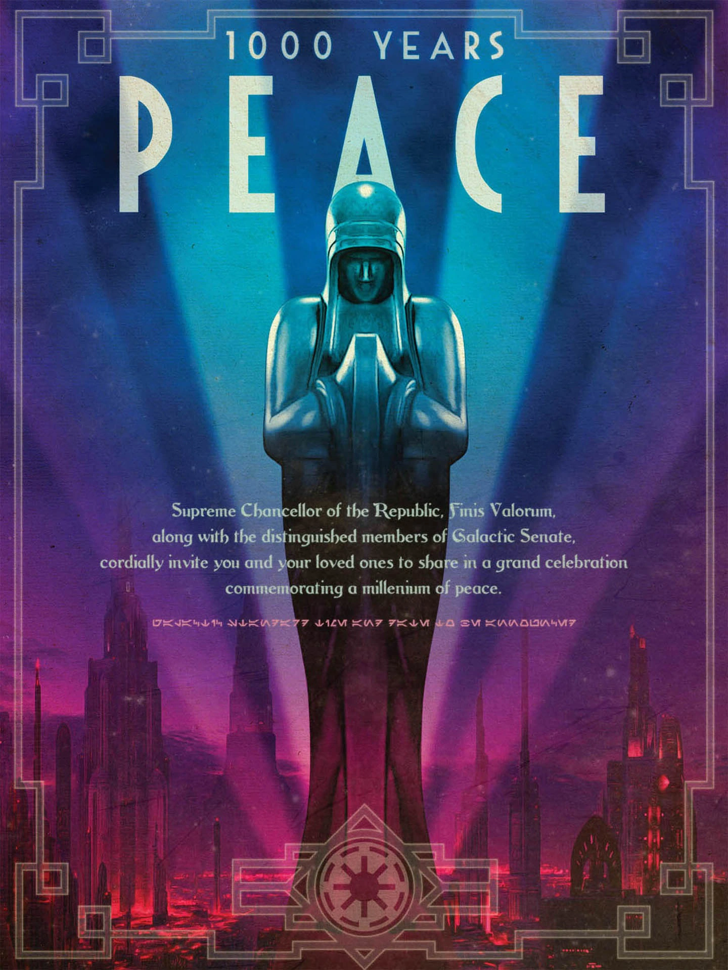 - "Yıkıcı bir devrilmenin ardından Cumhuriyet'in zaferi oldukça kesindi. Cumhuriyet başkentini yeniden Coruscant'a taşıyarak kendini yeniden kurdu. Bu galaksi tarihi için bir milat oldu ve o andan itibaren Galaktik Cumhuriyet doğdu."