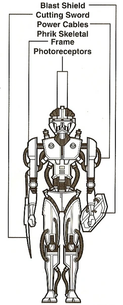 Темні солдати фази I були, по суті, металевими скелетами без броні, проте відрізнялись високою міцністю, оскільки виготовлялись з надміцного металу фріка. Дроїди були озброєні вібромечами, вмонтованими в праве передпліччя, які наносили пошкодження, ігноруючи дефлекторні щити. Для додаткового захисту вони носили вибухостійкі квадратні щити, які відбивали бластерні заряди. Солдати дуже швидко бігали, а за необхідності могли на короткий час прискорюватись.