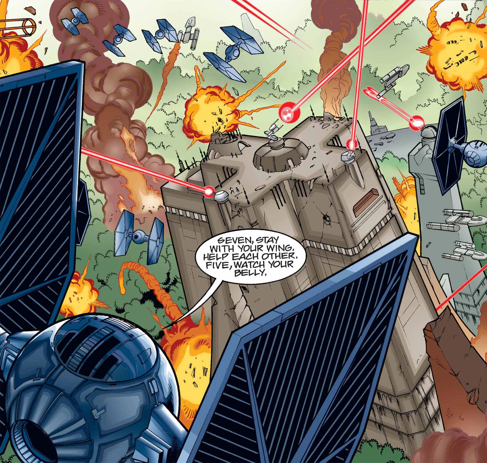 Eventually, the 2/181st was given the assignment to retake Ord Biniir, which had fallen to the Rebel Alliance with an entire wing of starfighters defending it. Fel led the squadron through the Second Battle of Ord Biniir, in which the squadron performed extremely well, driving the Rebels off the world. As it so happened, that victory occurred on the same day as the Battle of Yavin, which saw the Empire handed its greatest loss yet with the destruction of the Death Star.[1]