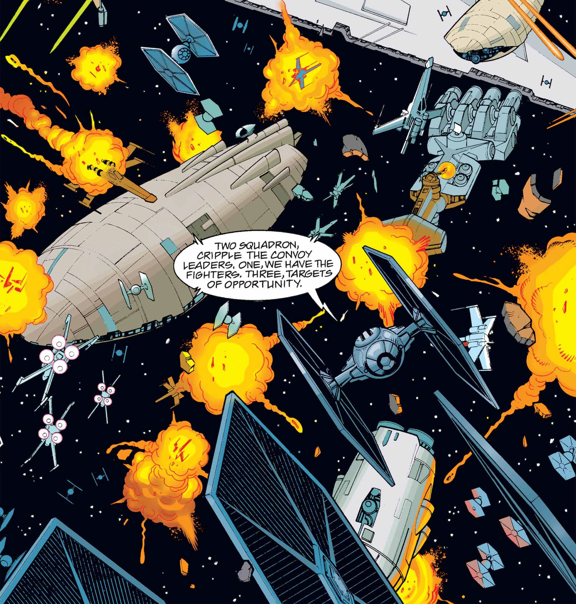 In 3 ABY, the 181st was assigned to ambush an arms convoy near Derra IV and briefed by Darth Vader himself. In the battle, the second squadron was assigned to prey on the transports while Fel led the first squadron in picking off the fighter cover. The third squadron took on targets of opportunity in the dogfight. The Rebel convoy was routed in a major victory for the Empire, and a ceremony was held on Coruscant to honor the 181st's achievements, over which Galactic Emperor Palpatine himself presided. Derricote was promoted to general and transferred out of the unit. Fel was promoted to colonel and given a barony and command of the 181st.[1] Phennir was promoted to commander and made a squadron commander and Fel's executive officer.[1]