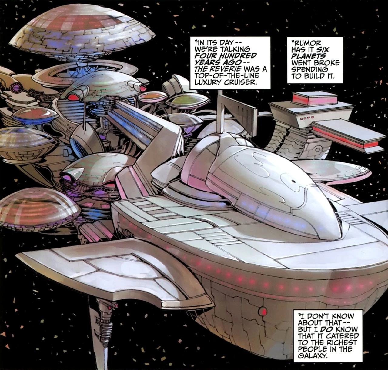 - ↑ 2.0 2.1 2.2 Star Wars Adventures: Boba Fett and the Ship of Fear takes place in 2 ABY. The Reverie's construction is said to have taken place 400 years before. This date is derived using simple math based upon other confirmed dates.